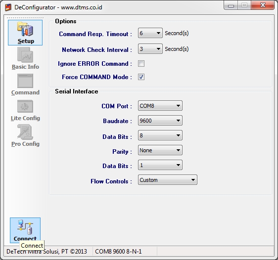 DeConfigurator adalah aplikasi berbasis Windows OS untuk keperluan konfigurasi maupun monitoring modem yang telah terinstall aplikasi embedded DeGateway.