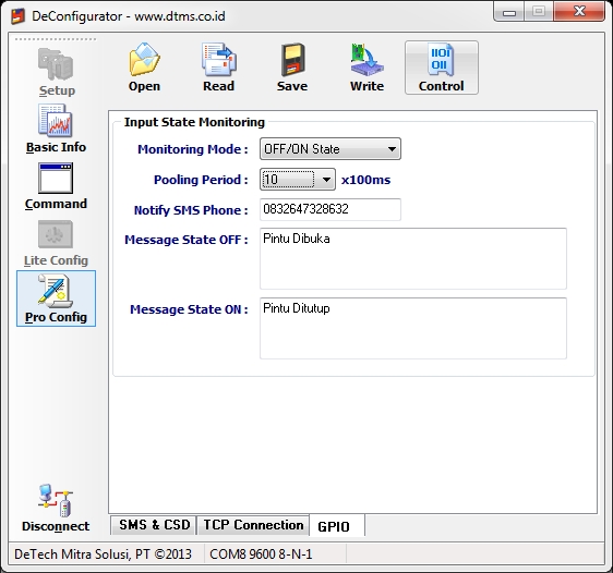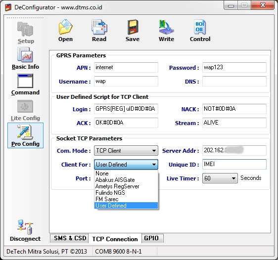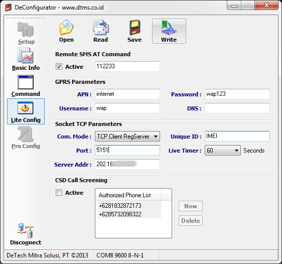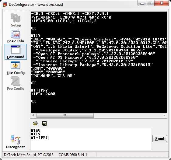 Konfigurasi modem via AT Command juga bisa dilaksanakan dengan sangat mudah dengan adanya fasilitas untuk mengirim beberapa AT Command secara berurutan. Bagi modem yang sudah dilengkapai dengan aplikasi DeGateway, maka pembacaan dan penulisan konfigurasi bisa dilakukan via GUI yang mudah.
